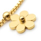 A delicate floral charm anklet crafted with an anti-tarnish gold finish, designed to bring a soft, feminine bloom to every step.
