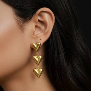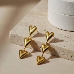 Charming 18k gold-plated bow earrings with a puffy heart drop, featuring an anti-tarnish finish for long-lasting, romantic elegance.