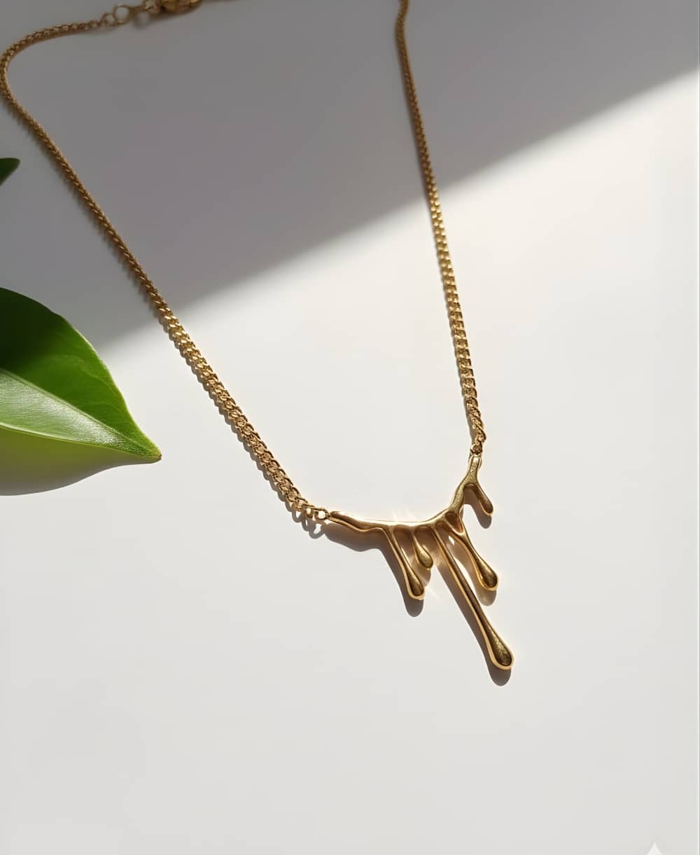 The Lava Drop Necklace brings molten elegance to life with its fluid drip-inspired design, crafted in premium 18K gold plating for a bold, modern edge. Its smooth, liquid-gold silhouette gives the perfect balance of statement and sophistication, making it ideal for parties, night-outs, and daily glam. Anti-tarnish coating ensures long-lasting shine, while the lightweight build offers effortless all-day comfort. Style it solo for a sleek look or layer it for a dramatic gold moment. A standout accessory for every jewellery lover.