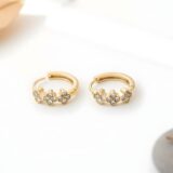 Celebrate beauty with our Triple Flora Huggies. These dainty hoops feature three intricately crafted flowers studded with premium crystals. Made from high-quality material with 18k gold plating, they are completely anti-tarnish and waterproof. These earrings are perfect for those who love subtle floral details that don’t fade over time. Hypoallergenic and lightweight, they are ideal for sensitive ears and provide a sophisticated touch to your daily look.