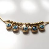 A delicate anti-tarnish anklet featuring mini blue-eye charms for everyday protection and style—lightweight, durable, and effortlessly elegant.